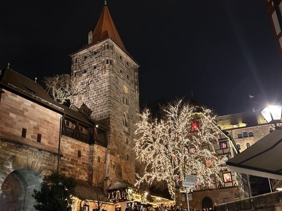 In the afternoon, we arrive at the gates of the Thurn and Taxis Palaceâand step into pure holiday magic. This isnât just a marketâitâs a scene pulled straight from a winter fairytale. Set within the private courtyard of a still-inhabited royal residence, the Romantic Christmas Market glows with thousands of tiny golden lights that flicker against the stone palace walls and towering pines. One of the most impressive buildings here is the St. Emmeram Castle, the residence of the aristocratic family. This is not just a market. Itâs a feeling. And it will stay with you long after the lights fade.